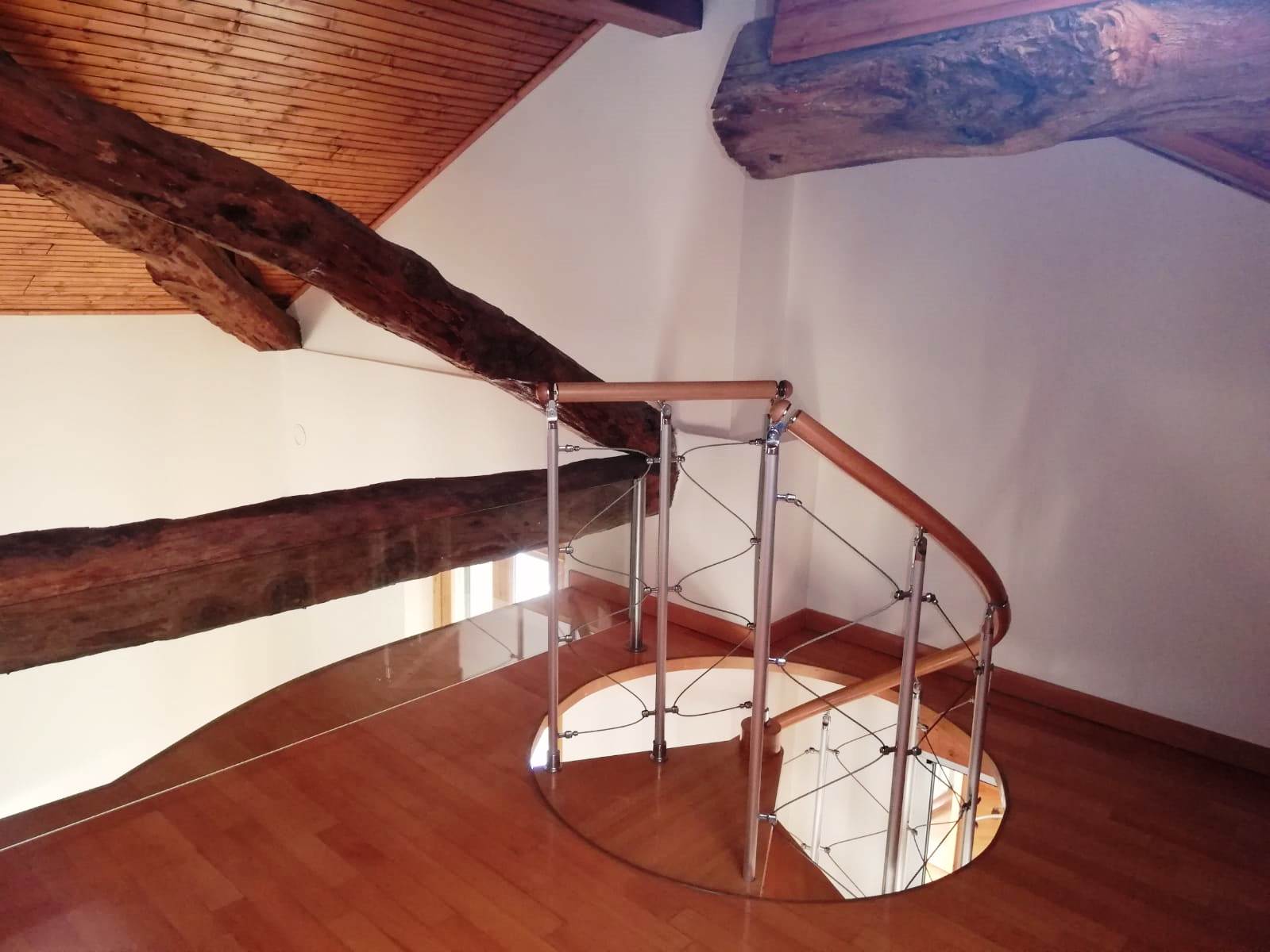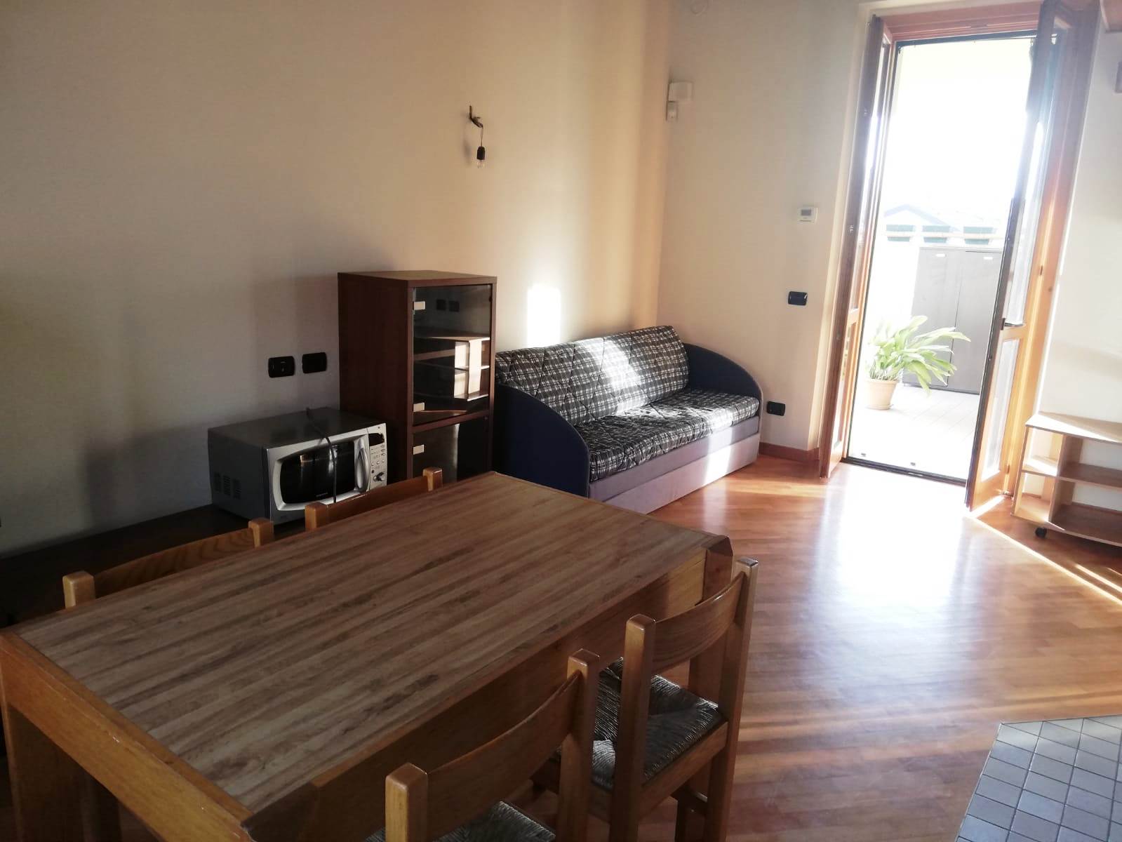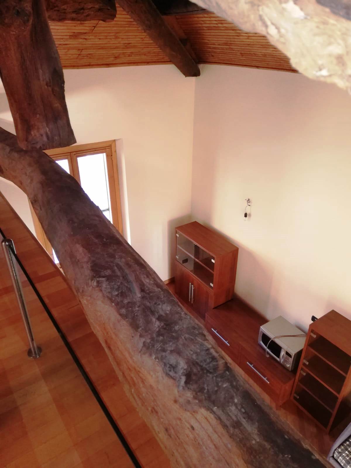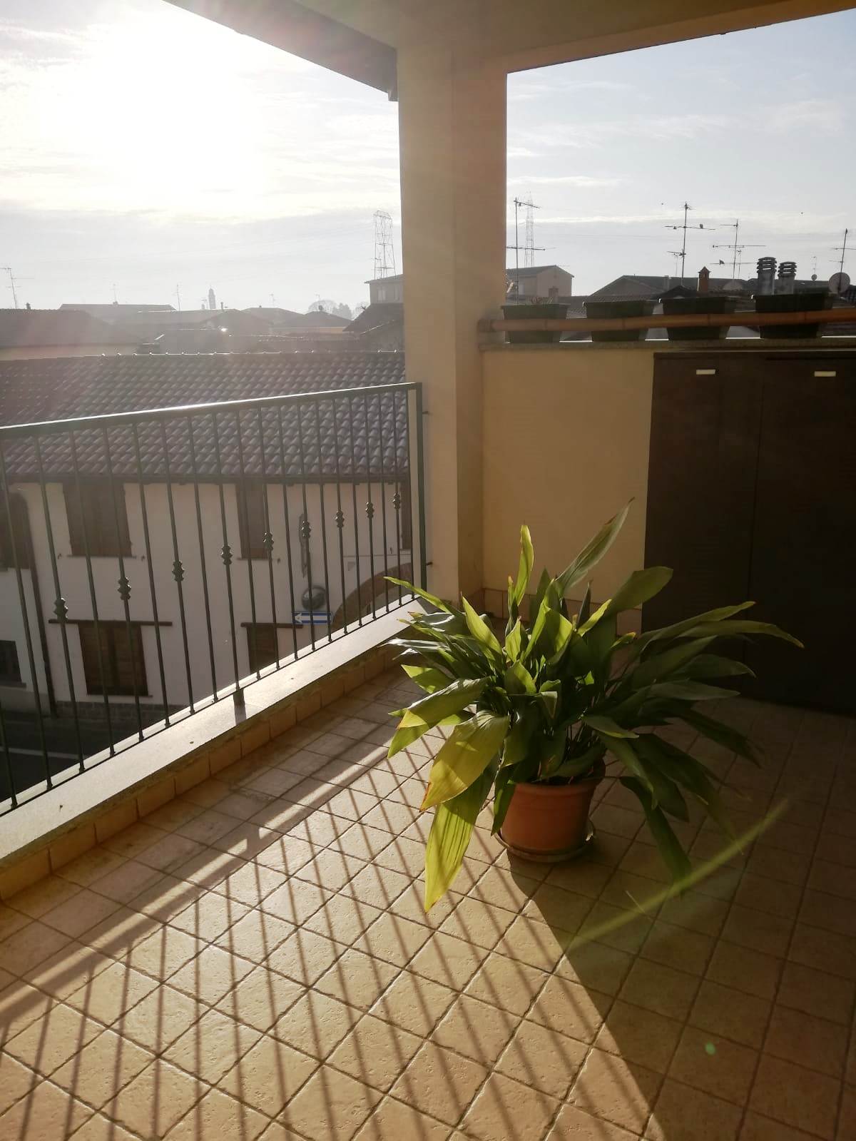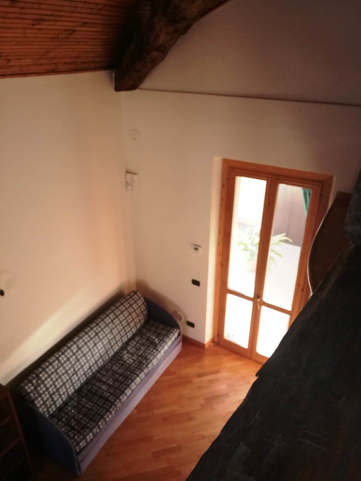 Aicurzio- Ubicata nel cuore del paese, in posizione comoda e servita da ogni genere di necessità, inserito al 2° ed ultimo piano di una graziosa mini palazzina con sole 8 unità familiari, Miranda Immobiliare propone ampio e ottimo Bilocale di circa 75 mq oltre studio e ampio Terrazzino. La particolare soluzione, caratterizzata da bellissime travi in legno a vista, è in perfette condizioni interne, ristrutturata, curata nel dettaglio e ARREDATA. Internamente così disposta: Ingresso su Soggiorno con particolare stufa a legna e Cucina a vista, aventi uscita al comodo Terrazzino di circa 12 mq, disimpegno della zona notte con Servizio finestrato e Camera matrimoniale; collegato tramite scala interna ulteriore spazio Studio/locale hobby soppalcato con vista sul living. A completare il tutto comoda Cantina Immobile assolutamente da visionare ed unico nel suo genere.